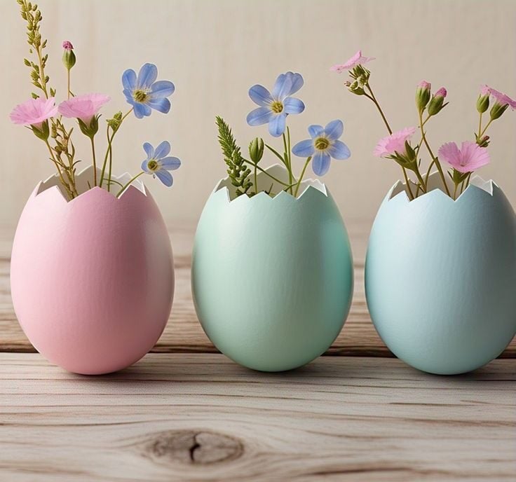 Monochrome arrangements are both elegant and easy to coordinate. Select a single color like soft pink, lilac, or pale yellow; and carry it across flowers, decorative eggs, and table accents. Using varying shades of the same hue adds depth without complicating the palette. This approach feels curated and intentional, perfect for modern tablescapes. To enhance texture, combine smooth ceramics with rustic elements like twine-wrapped eggs or linen napkins. The result is an effortlessly stylish centerpiece that feels unified and calming, a subtle nod to spring’s gentle palette.