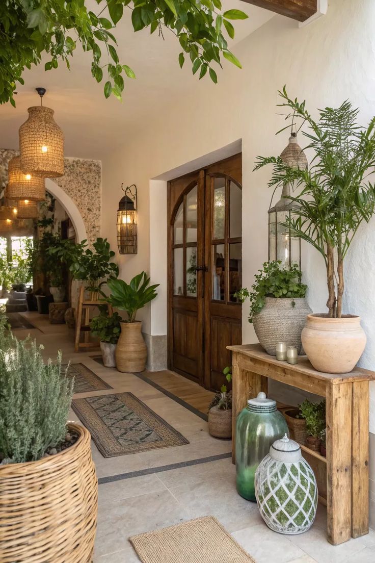 Plants have a way of making a space feel alive immediately. Tall plants in corners, like fiddle leaf figs or snake plants, create height and fill empty spots gracefully. On the console, smaller potted plants or fresh branches in a vase add life and texture. Natural textures such as woven baskets, wooden bowls, or ceramic pots enhance the organic feel.