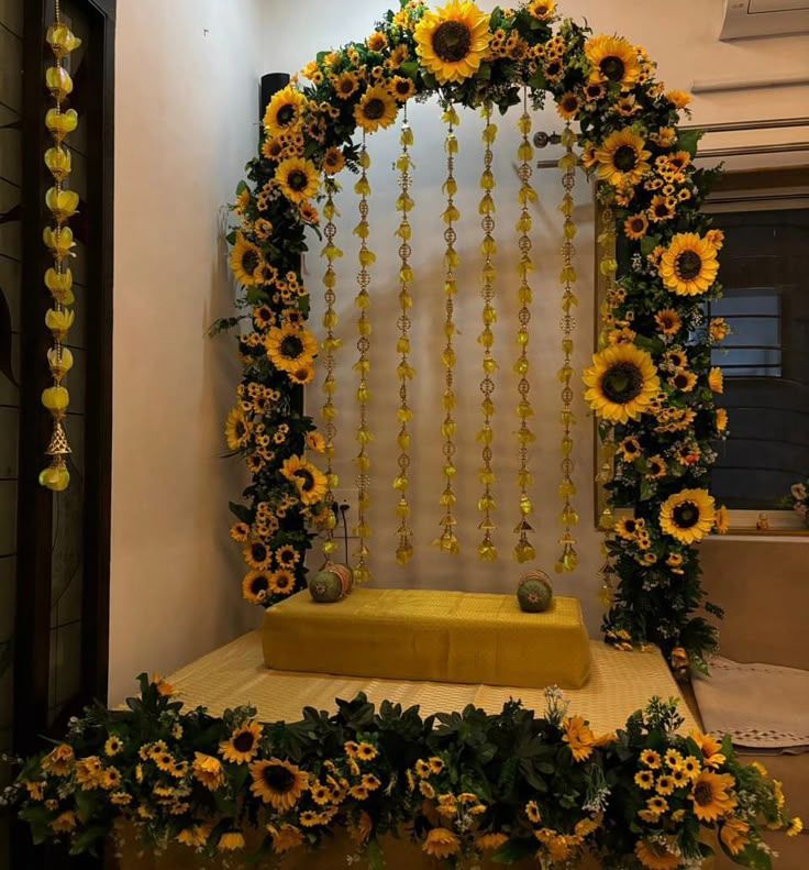 Small bells or hanging ornaments can bring movement and sound into the decoration. Many traditional homes place small bells near prayer spaces because their gentle sound creates a peaceful atmosphere during worship. For instance, a few decorative bells can be hung from the top of the Ganesh backdrop. Imagine entering the room and hearing the soft sound of bells whenever a gentle breeze passes through the space. Similarly, bead hangings or small decorative chains can also be used to frame the idol. These details may be small, yet they contribute greatly to the overall beauty of the setup.