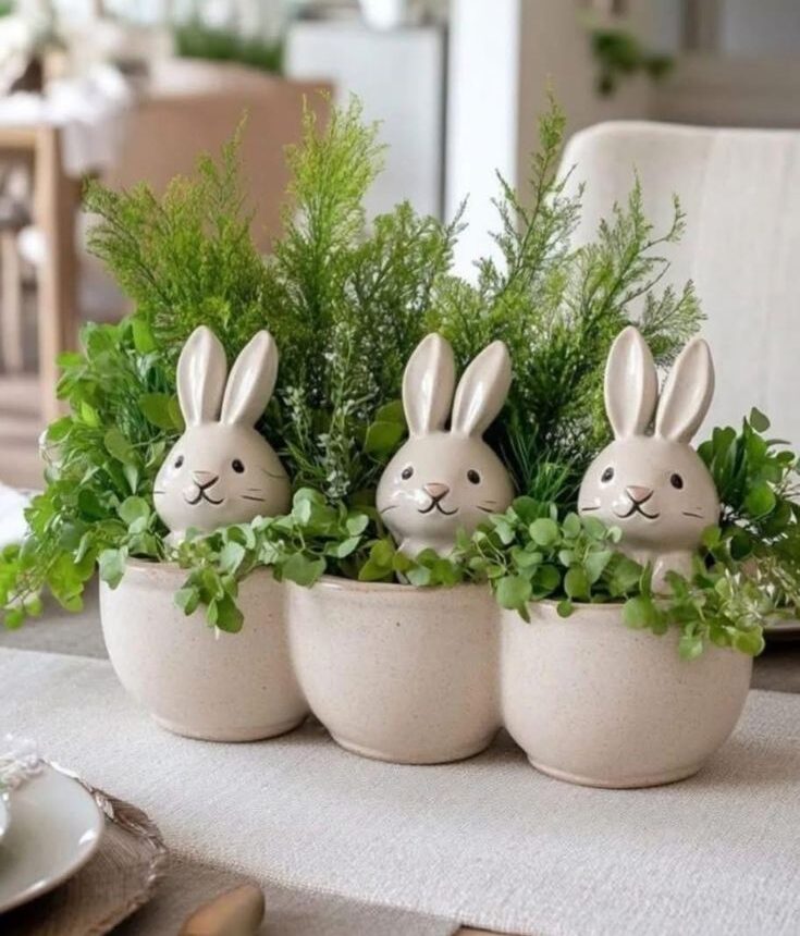 Adding whimsical charm, tiny bunny figurines tucked into fresh greenery or moss instantly signal Easter cheer. Mix ceramic, wooden, or felted bunnies of varying sizes to keep the display dynamic. Surround them with miniature eggs or pastel florals to create a miniature spring scene. The key is scale; small enough to feel delicate, but grouped to make an impact. Placing this centerpiece slightly off-center or along a runner encourages interaction, inviting guests to admire each detail closely. This playful approach transforms your table into a miniature holiday landscape that delights both kids and adults.