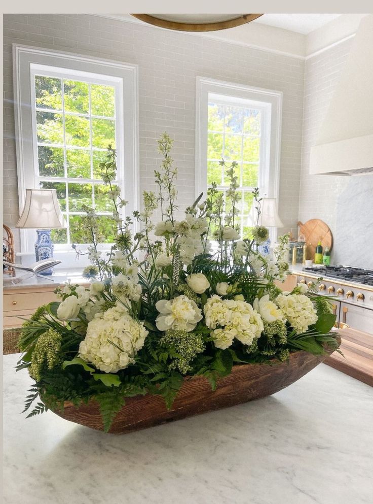 If you love a touch of nostalgia, vintage milk glass creates a refined yet sentimental centerpiece. Instead of relying on one large vessel, gather a mix of varying heights like pedestal bowls, hobnail vases, and compotes; and fill them with delicate spring blooms. Soft whites layered with pale blush or muted lilac feel romantic without overwhelming the table. Because milk glass reflects light beautifully, even a neutral arrangement feels luminous. Pairing this Easter Centerpiece Idea with lace accents or heirloom china enhances the timeless charm. The overall effect feels curated, graceful, and deeply personal.