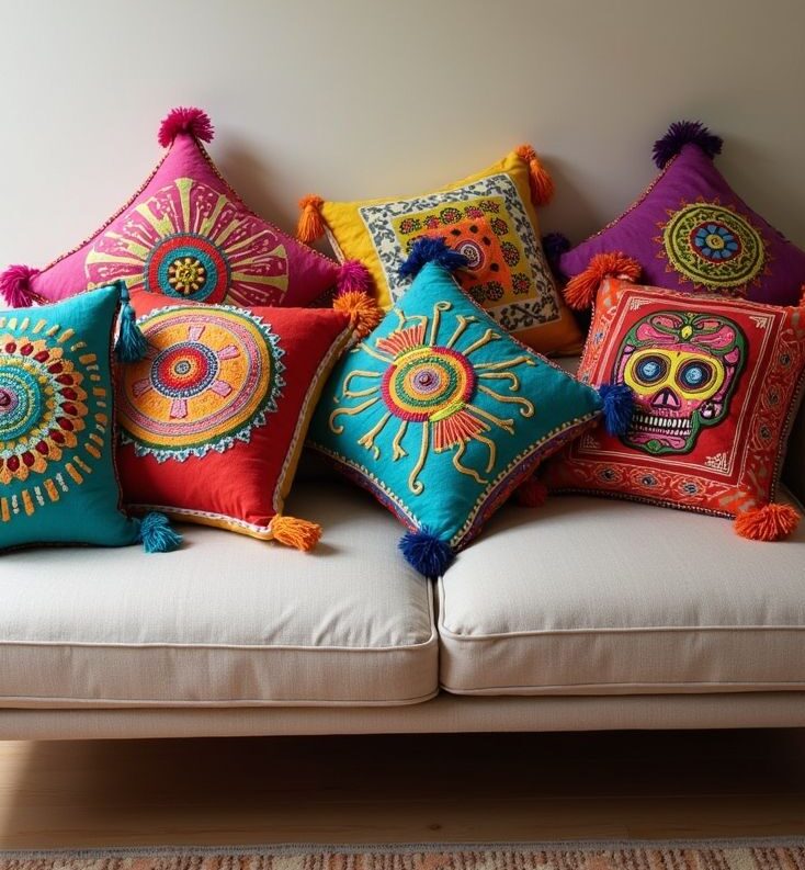 Throw pillows are one of the easiest ways to experiment with bold designs. They come in endless colors, patterns, and textures. Because of this variety, you can easily change the look of a room without buying new furniture. For instance, a neutral couch can suddenly look vibrant when decorated with bright patterned pillows. Additionally, mixing different pillow sizes and fabrics makes the sofa feel more relaxed and welcoming. Many creative Funky Home Décor Ideas rely on accessories like pillows because they are affordable and easy to replace.