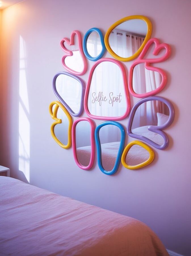 Mirrors are usually chosen for practical reasons, but they can also be great decorative pieces. Instead of a simple rectangular mirror, you could try one with a unique frame or unusual shape. For instance, round mirrors with colorful frames can make a hallway look stylish. Likewise, a mirror shaped like a sunburst can add character to a living room wall. Because mirrors reflect light, they also make rooms feel brighter and slightly bigger. As a result, designers often include them when planning playful Funky Home Décor Ideas.